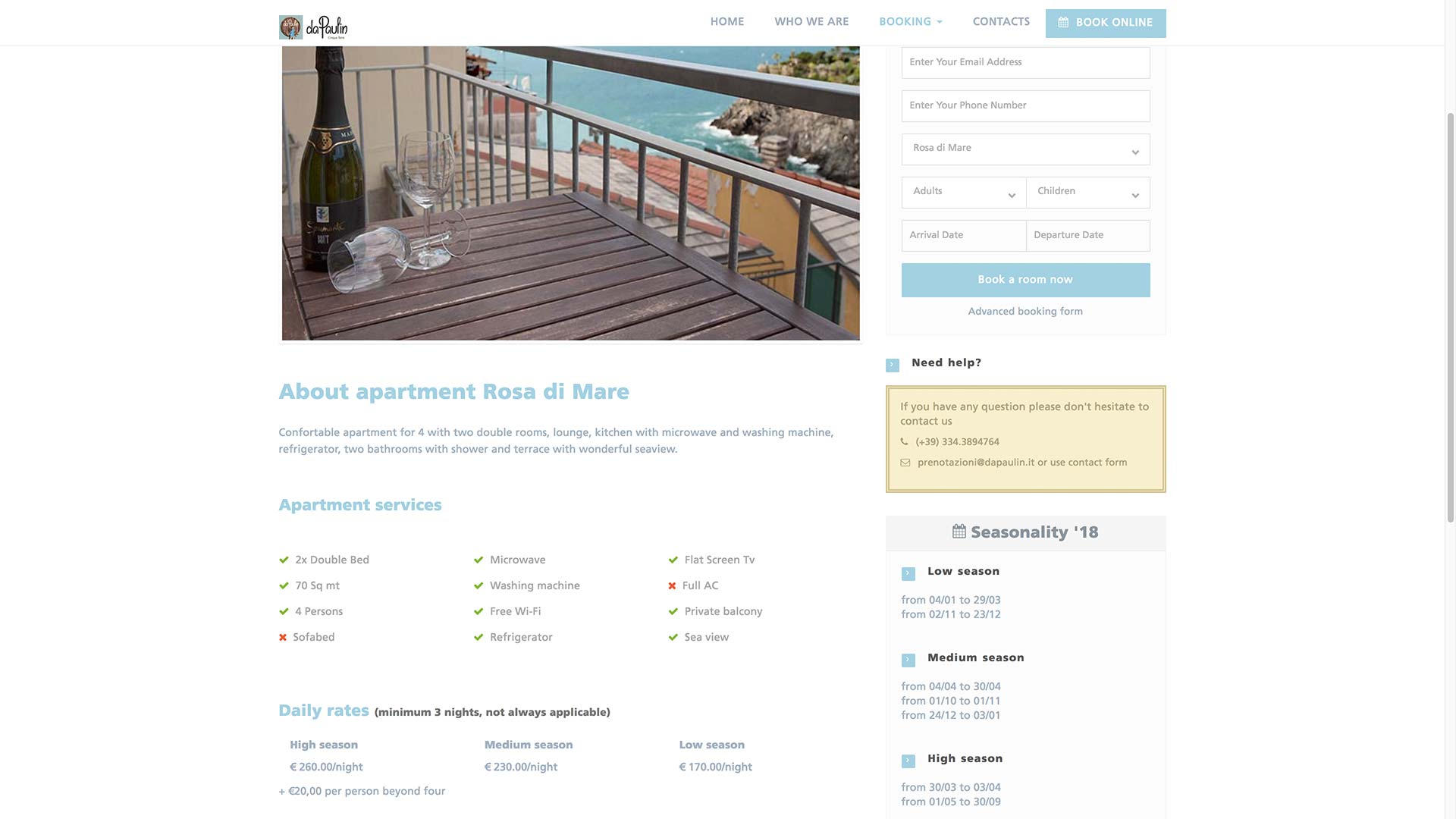affittacamereRealizzazione del sito internet dell'affittacamere presente nelle Cinque Terre.